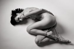 She closes her eyes, exhausted, alone,